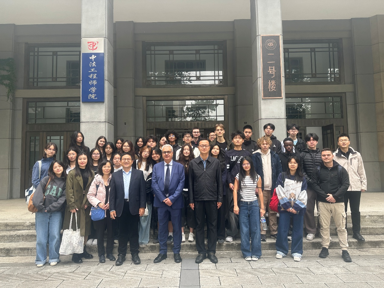 10月15日,应谈球吧官方网站邀请,巴黎东郊国际高中中文国际班(Lycée International de l’Est Parisien)34名师生来访北航,公司党委书记张江、法方经理布卡麦、党委副书记徐高楠出席了欢迎仪式。