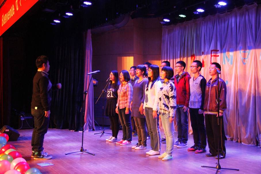 一段美轮美奂的舞蹈在轻松愉快的气氛中出演。之后,14级同学们各展才华,吉他弹唱、古筝表演、傣族舞蹈等节目,向法国友人展示了中法人的多才多艺。一段中国传统长拳表演,诠释了中华文化的博大精深。而法国友人的热情,同样点燃了全场的气氛。他们向我们详细地介绍了建筑、饮食、文化遗产等各个方面的法国文化,让我们进一步了解到法兰西民族文明。而后,一支由法国友人组成的乐队演唱了一首悠扬动听的法语歌曲,令全场起立鼓掌。中场休息期间,法国友人与中法员工一起来到摆满了点心和饮料的长桌边。中外员工边吃边交流,中法人教会了法国友人简单的汉语问候语,法国友人也将最纯正的法语说给我们听,之后,一张张照片记录下了我们与法国员工的深厚友谊。