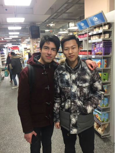 出了餐厅,心满意足的我们在餐厅门口驻足。我竟突然觉得迎面走来的一个法国员工很眼熟。自以为认识他(以为一起上过课的我),便热情的跟他打招呼,他也很热情地跑过来跟我们聊天。