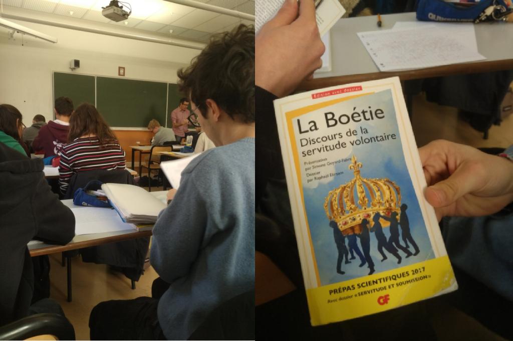 课前和亚裔的小伙伴开心的交流了中法的课程规模。因为很奇怪的发现这节物理课的人数出奇的多。后来小伙伴告诉我们,这种理科的课程在他们一年级的时候人数就是会很多。而我也告诉他们我们也是这样的,法语小班教学,理科性课程是年级一起上大课。
