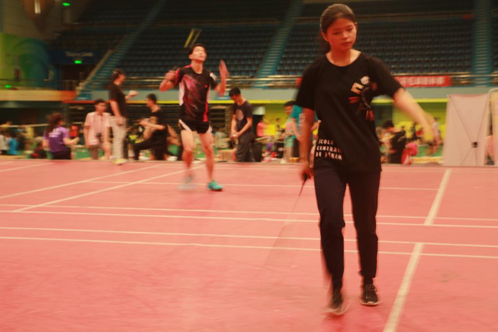 比赛采用团体赛赛制,并且我们系被分进了包含新生赛前三名的死亡之组。但羽毛球队队队员们并没有畏惧,而是勇往直前,,每位选手都以紧张而激动的状态进入比赛,认真地打好自己的每一场比赛里的每一球。