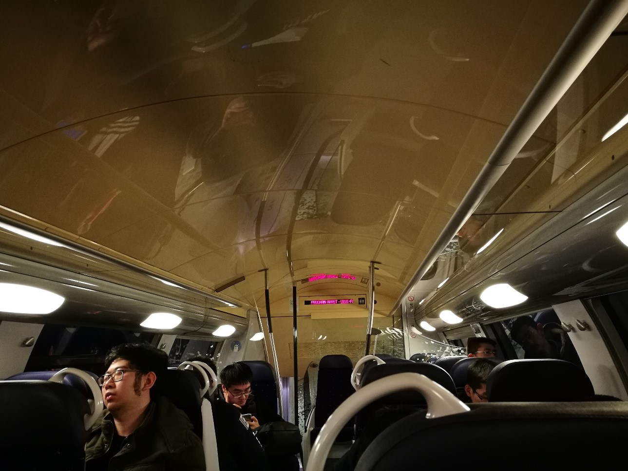 | 图 3 员工们搭乘法国高铁TGV的二等座车厢 |