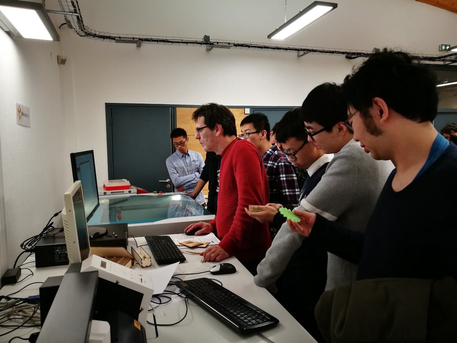 下午我们来到了里尔中央理工大学一个实践性特别强的教室——Fablab,这里是一个员工亲自动手进行特殊材料制备的实验室。员工们主要参观了切割、雕刻、3D打印、激光扫描等仪器并进行了简单的操作。