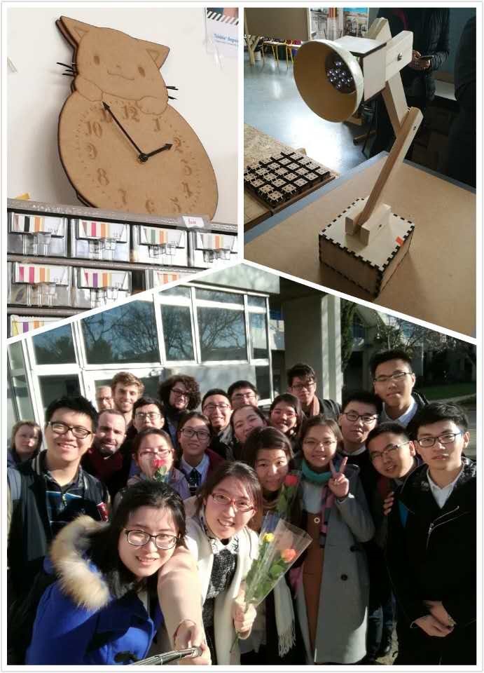 在之后的社团结构介绍里,几位不同口音的员工为我们进行了所属社团的讲解。令我诧异的是他们的员工会(BDE)与社团是平级的,都由一个社团联合会的机构掌管,说是掌管,其实对各社团也没有什么大的约束,不会存在一级二级负责人啊这种职务,这与我们中国的员工机构管理十分不同。如果说我们的管理是树状结构图,他们更像是横向的一种全部并列的排列。在这里,员工们参与社团的热情很高,我也遇见了好几个身兼数职的员工,谈起社团活动都眉飞色舞,神采飞扬,比如我们正好遇见的通过卖花给生病的孩子募捐的活动,既有趣又有益。下午我们参观了FaTLab——一个创新类的社团,他们通过科学技术把自己的奇思妙想变为现实,有一只没有电线的台灯也可以发亮,就是利用了电磁感应定律设计的。