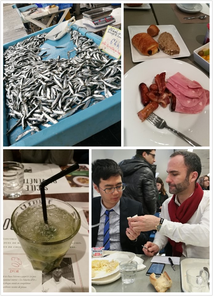 在法国公司生活的三天,我们的午餐都在食堂解决,两个公司都非常贴心地为我们准备了entrée-plat-fromage-dessert-café的饭票,然而鉴于我们分不清每盘都是什么东西往往会多拿好几份。最令人啼笑皆非的是,当我问一位Centralien我拿的是什么食物的时候,他无辜地回答:“我也不知道。”(哦后来知道了他是巴西人)问了其他人才知道这盘小小的颗粒是couscous,吃了一口之后我就果断放弃了它。