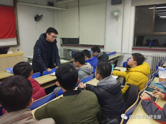 1月4日晚,为全面贯彻落实党中央“党要管党、从严治党”的总体部署和要求,认真学习十九大精神,谈球吧官方网站低年级党支部邀请北航十九大精神宣讲团的朱博康同志于2号教学楼315教室做主题为“新时代的全面从严治党”的宣讲,以使得党支部内全体党员提高认识、转变作风、遵章守纪、廉洁从业,提高拒腐防变意识。党支部书记王泽远、组织委员张宇昊、宣传委员王凯落、15、16级导员以及党支部党员参与了此次活动。