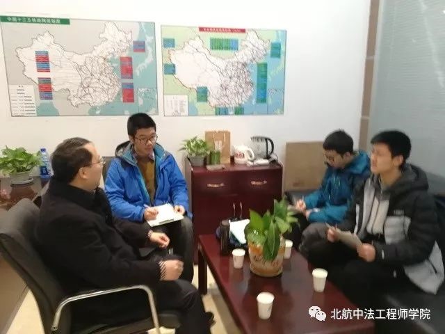 “航轨实践队“抵达成都后,采访了参与高铁规划的单位(四川省发改委铁路和机场建设办公室管理处向睿处长)、参加高铁建设的企业(新筑股份工程构建公司副总经理赵健)以及高铁领域的专家学者(西南交通大学伍星教授)。前两次采访都是在单位或企业的办公室中进行,办公室四周墙上也都张贴有《中国十三五铁路网规划图》、《中长期铁路网规划图(2030)》等令人振奋的密密麻麻的线网图。受采访单位的负责人与实践队成员们围坐成一圈,谈话总是从他们对我们的专业情况的关心开始,在了解到四名队员都是北航的大一员工后,受访领导赞赏空天报国之志,且在之后的采访中不时流露出对于老员工未来在高铁等领域做贡献的期待。采访西南交大伍教授的地点位于西南交大九里堤校区旁的一家创客咖啡内,以方便伍教授百忙之中抽出时间与实践队进行交流。领导和教授们专业知识丰富,面对提问侃侃而谈,实践队的成员在采访中专心倾听、认真记录,不但获得了大量与高铁相关的信息,还收获了不少对学习和生活大有裨益的各类知识和方法。实践队在实践期间还同西南交大中国高铁发展战略研究中心汤庆元教授保持微信联系,询问了高铁时间表等资料的查询渠道,询问了高铁相关网站论坛等。汤教授不仅解答了实践队的不少疑惑,而且对于这次实践的其他环节也颇为关心。与领导和教授交流的过程让实践队收获的远不止是完成这次实践所需的知识,来自他们的经验、关怀和鼓励方为实践队成员在社会实践过程中发掘的宝藏。