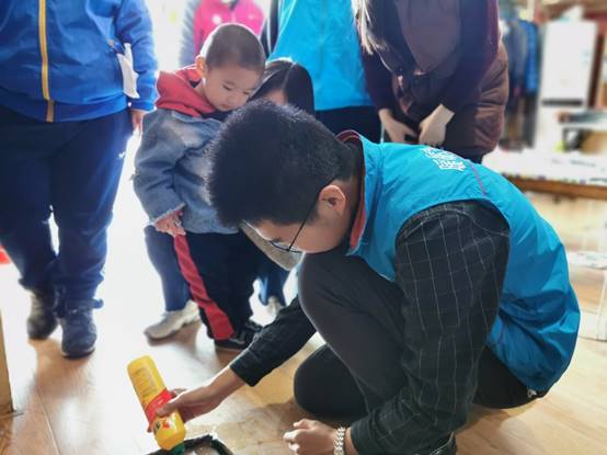(充满好奇、耐心等待的小朋友和沉着冷静、不慌不忙的志愿者)