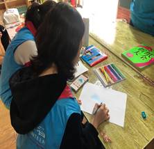 孩子们认真细心的样子打动着志愿者,志愿者们也更加有耐心地帮助可爱的孩子们。