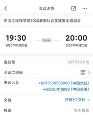 7月20日晚,2020年暑假社会实践安全培训会以线上会议的方式召开,培训会由辅导员姜淼主持。