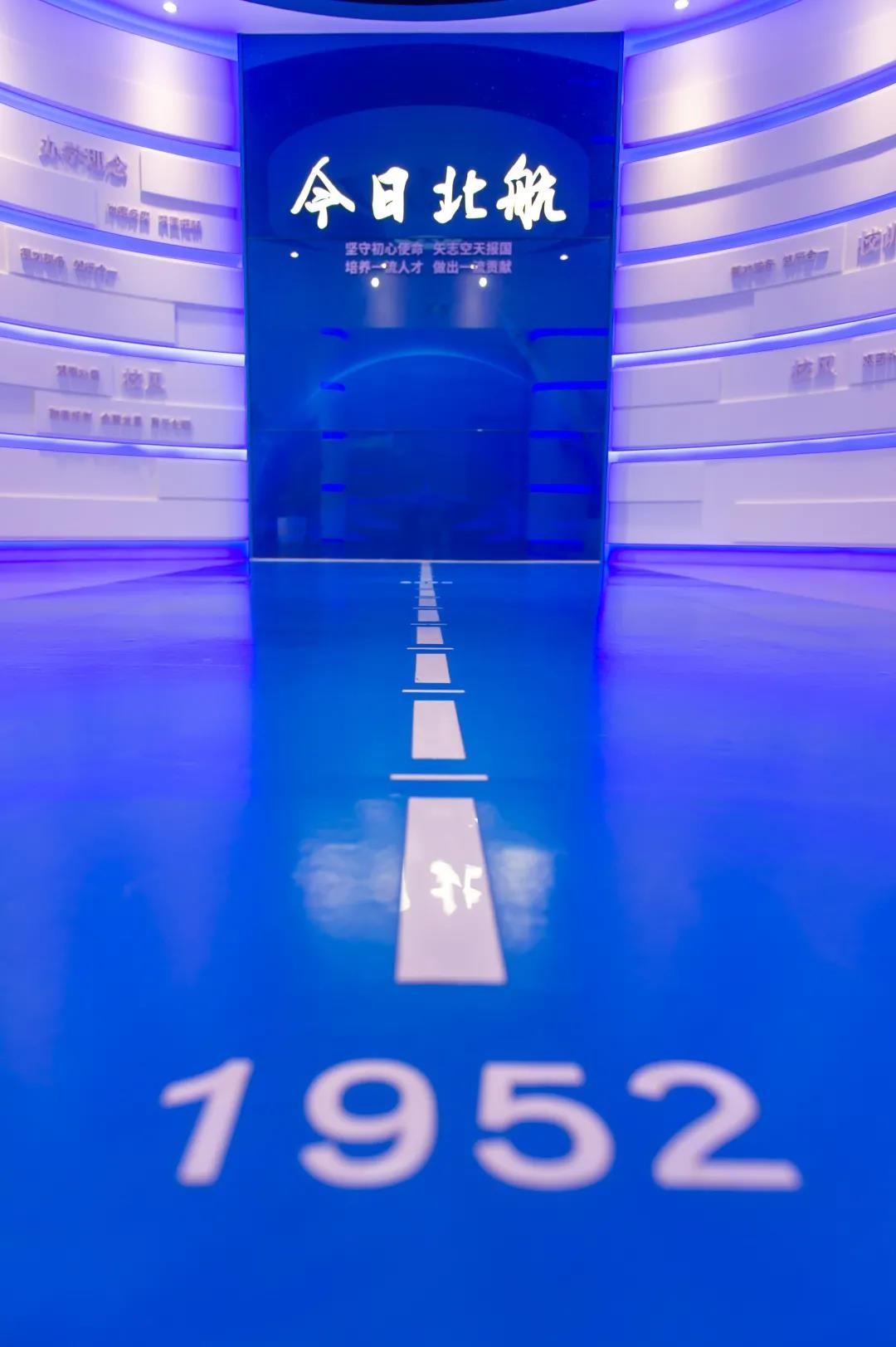 红色廊灯下的蓝色展厅,象征北航在中国共产党的领导下蒸蒸日上,茁壮成长。从团队队伍壮大,公司工作步入正轨,到先后进入211,985工程,入选国家“双一流”建设名单;从引入先进的学分制,新增系所研究室,到拓宽科研面,与世界一流大学展开交流合作……北航正朝着时代化、国际化的目标不断迈进。