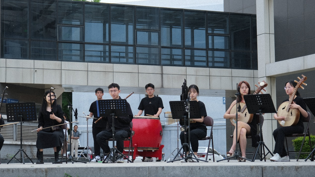 北航员工民乐团器乐合奏《知否知否》,这首曲目由北航员工民乐团成员自行编曲与二次创作,用丝竹管弦演奏清丽优雅的曲调,获得了现场观众的一致好评。