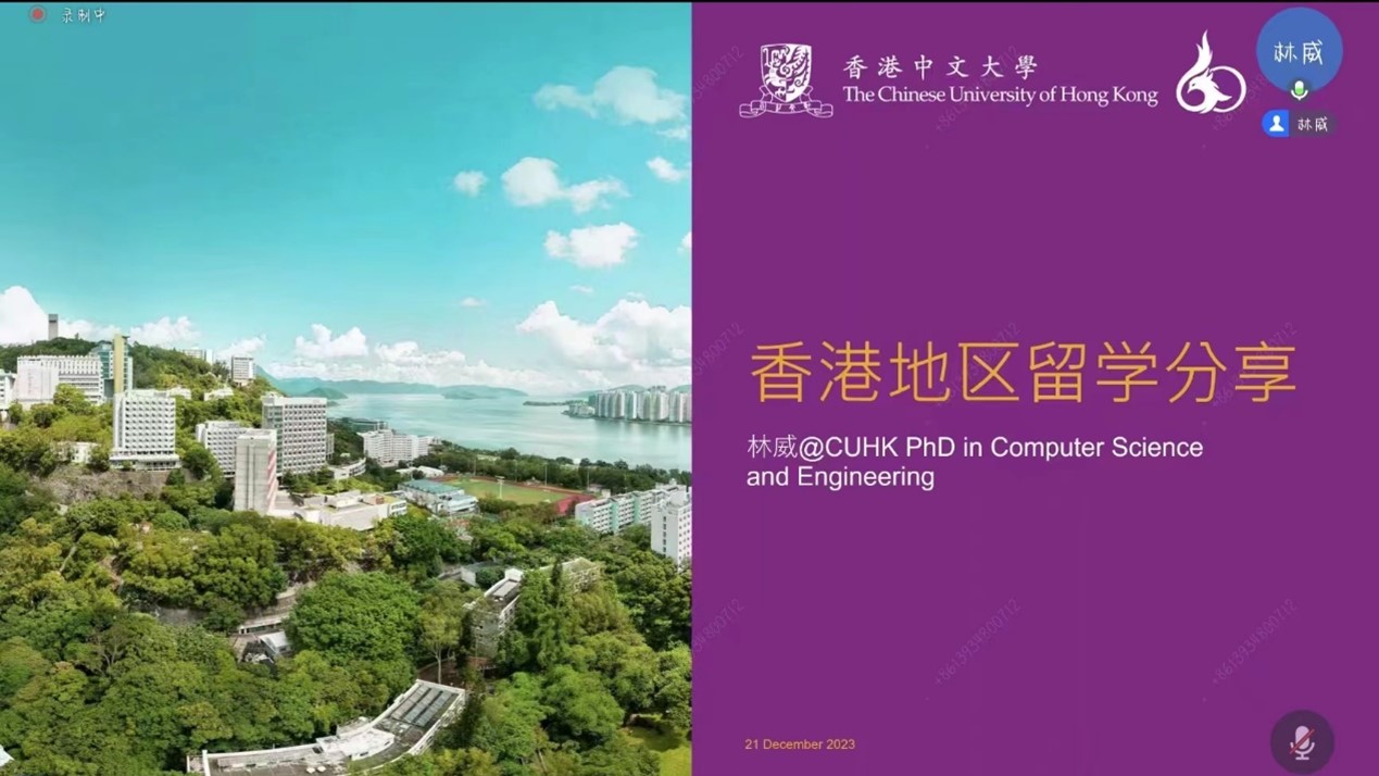 2023年12月21日晚19:00,由谈球吧官方网站主办的中法大讲堂朋辈领航系列讲座第四期顺利举行。本次讲座邀请了现就读于香港中文大学计算机科学与工程专业博士研究生的林威。