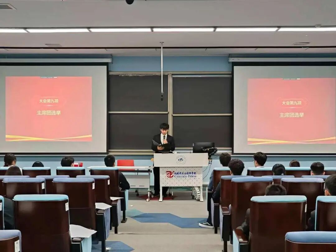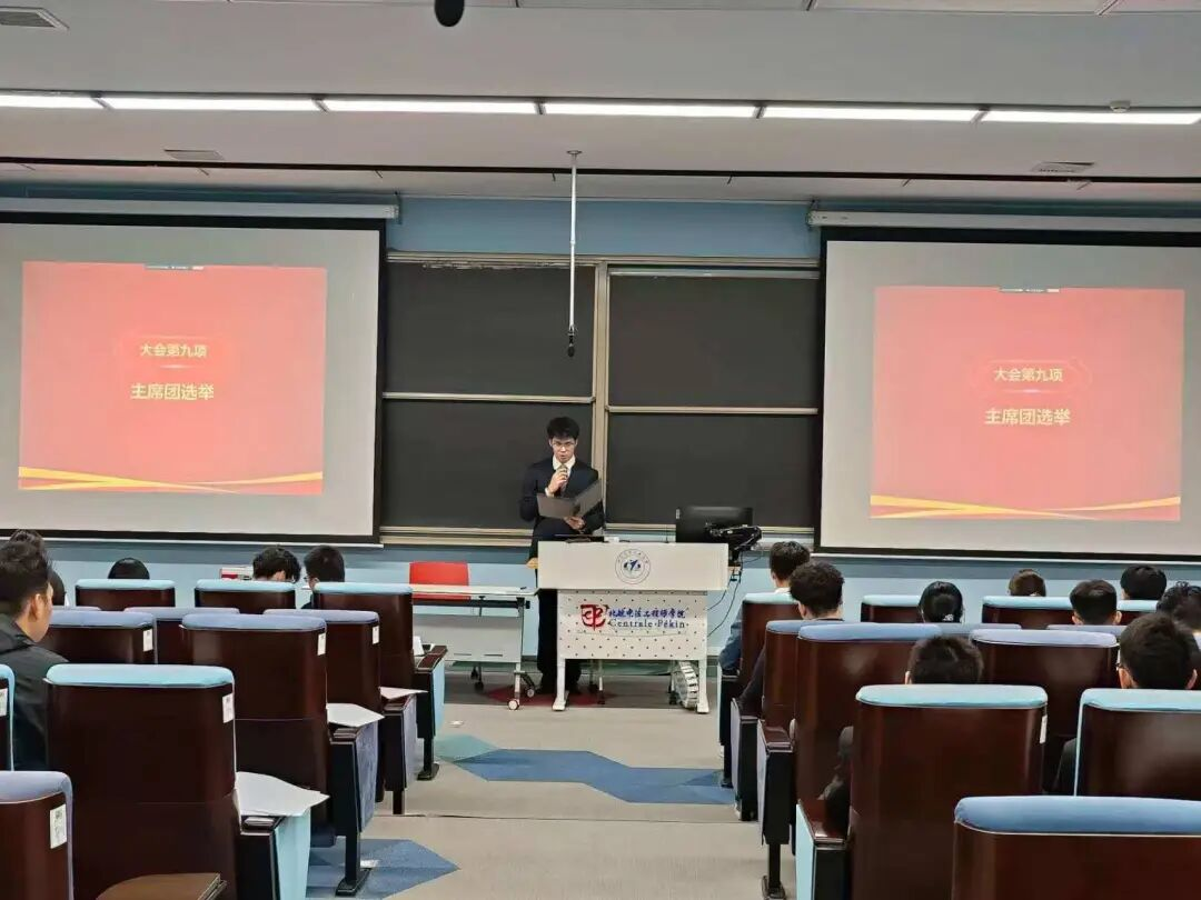 随后,大会进行选举环节。主持人宣读了中法/国通公司第四次员工代表大会监票、计票人员名单与主席团选举办法。各位候选人依次上台进行个人陈述。