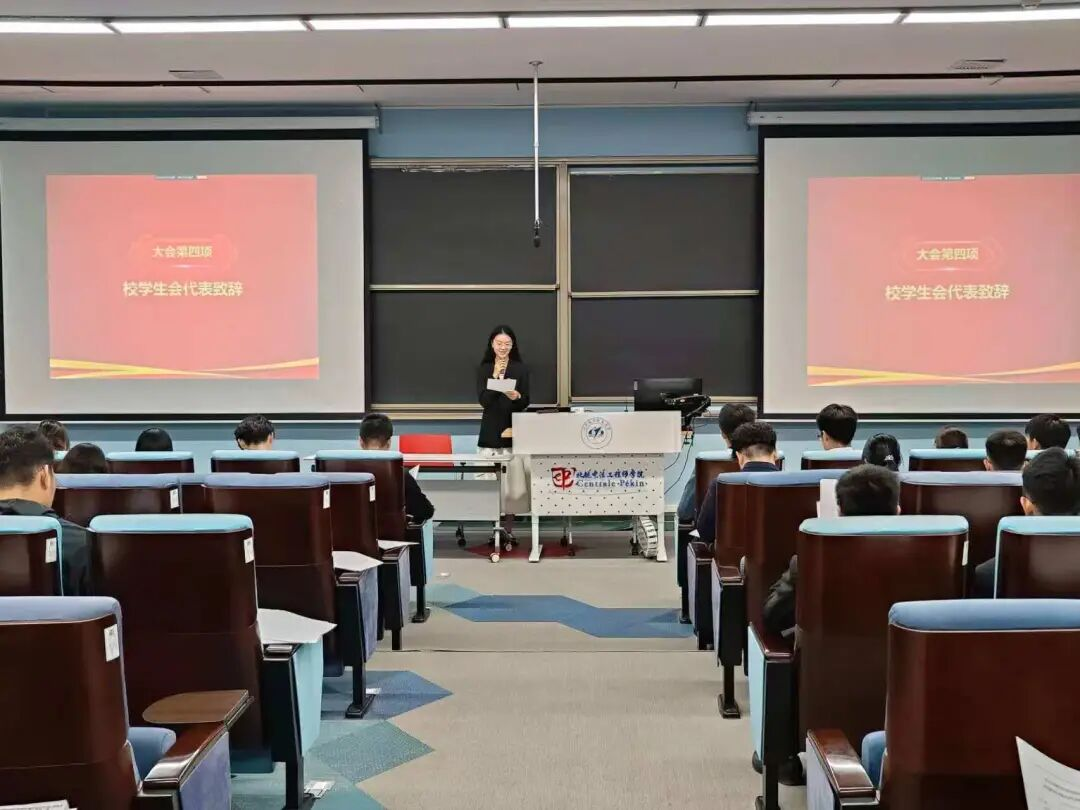 公司专职辅导员贾焕庭为大会致辞。他对大会的圆满举行和员工会过去一年的辛勤付出表示崇高敬意和诚挚感谢,并勉励大家以青年担当回应时代主题,在多元碰撞中构建文化共同体、以创新勇气定义未来工程师。他期许新一届的中法/国通员工会以习近平新时代中国特色社会主义思想为指引,坚守全心全意为同学服务的宗旨,不断提高政治站位,发挥好桥梁纽带作用,共同开创中法/国通员工会更加灿烂的明天。