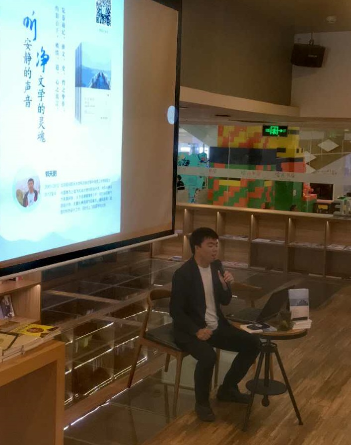 2017年6月4日,公司首届毕业生郭天鹏在北京鸿坤广场拾光书房举行“听安静的声音 净文学的灵魂”个人主题演讲,就处女作《听安静的声音》与现场观众进行互动交流并为粉丝现场签名。