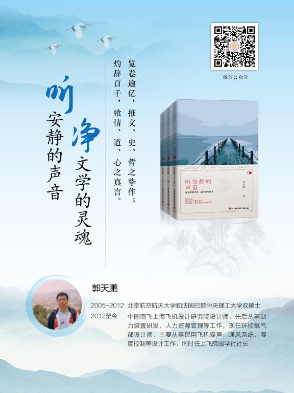 《听安静的声音》正是这样一部读书推荐的文集,在良好的读书氛围中,郭天鹏用自己的笔不断地吸引着朋友们走进一部又一部他喜欢的书:孙皓晖的《大秦帝国》、唐浩明的“晚清三部曲”、保罗·肯尼迪的《大国的兴衰》、东野圭吾的《白夜行》、马克·李维的《偷影子的人》……当然,现为中国商飞上飞院国学社的社长,他的推荐更少不了《商君书》、《韩非子》、《老子》、《庄子》、《贞观政要》等的国学经典。