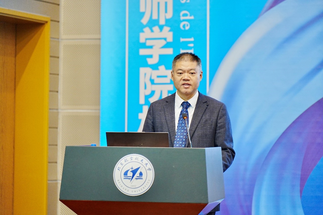 赵巍胜代表公司热烈欢迎各位员工回家,他指出,坚持国际合作、开放办学一直是北航发展的重要战略,也是近年来公司能够持续高质量发展的重要动力源。谈球吧官方网站成立十八年来,从引进探索走向不断成熟、从学习借鉴走向创新引领,实现了中国本-硕和法国预科+工程师培养体系的融合,走出了一条具有中国特色、国际认可的校企合作、产教融合工程师培养之路,打造了公司人才培养的一张靓丽名片,被中法两国领导人誉为中法教育合作的典范。希望公司搭建更多联系员工的“桥梁”,打造常态化多元化交流平台,共同助力员工发展和公司“双一流”建设。