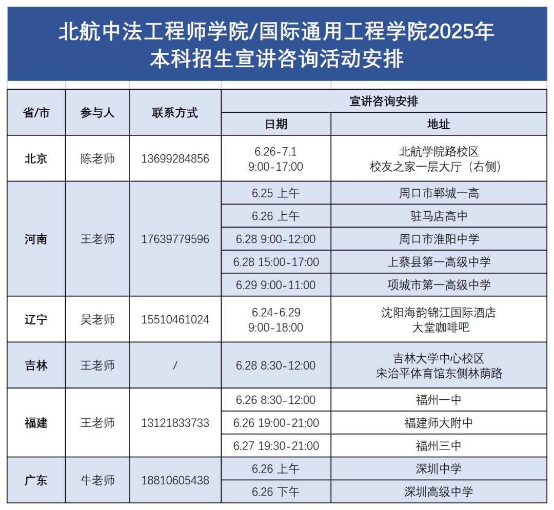 为了方便各位考生和家长更加详细的了解招生政策,公司招生团队将赴全国多个招生省市,参加2025年志愿填报咨询会活动。宣讲咨询会的具体安排见下表,欢迎各位考生和家长前来咨询!