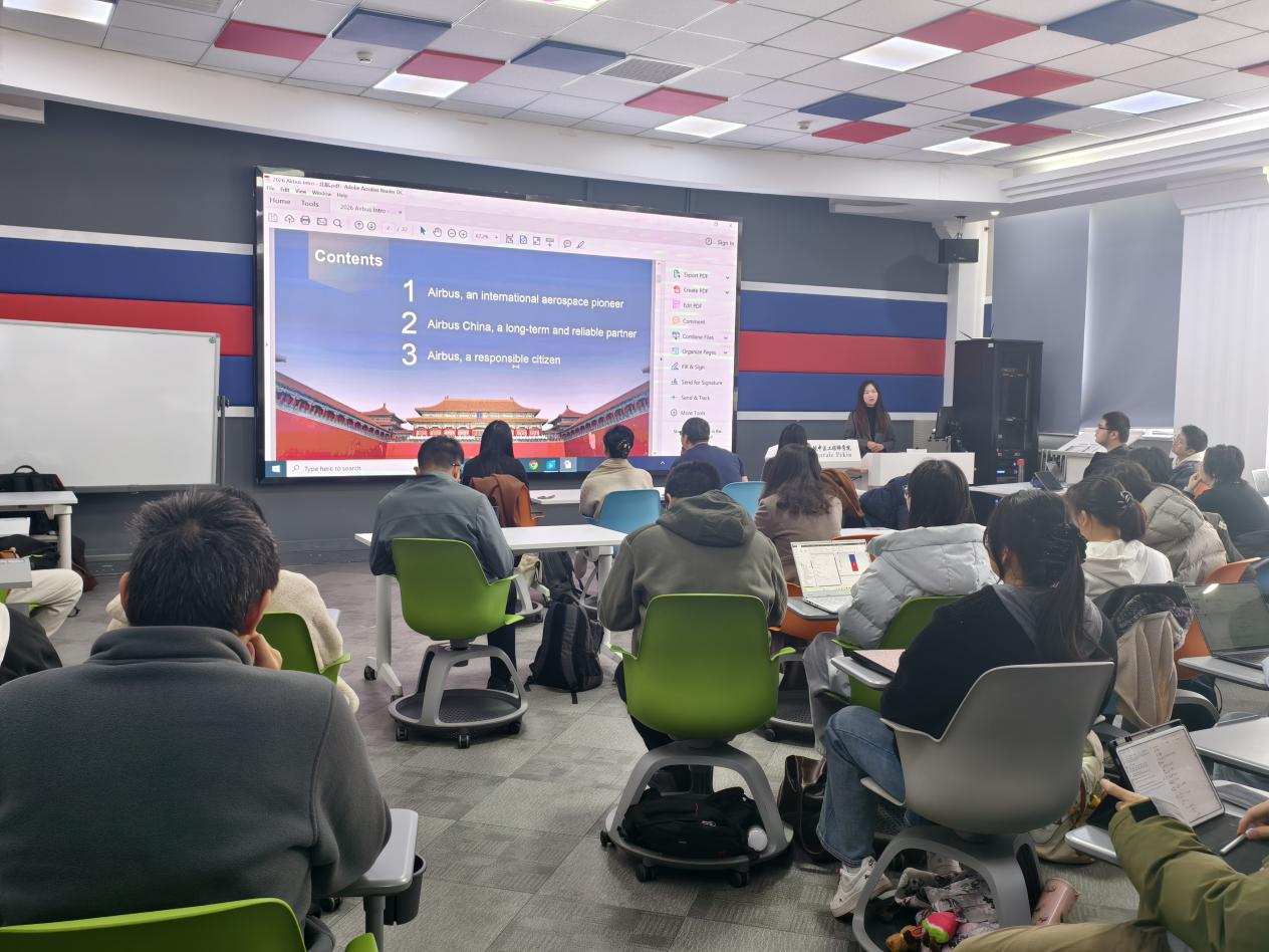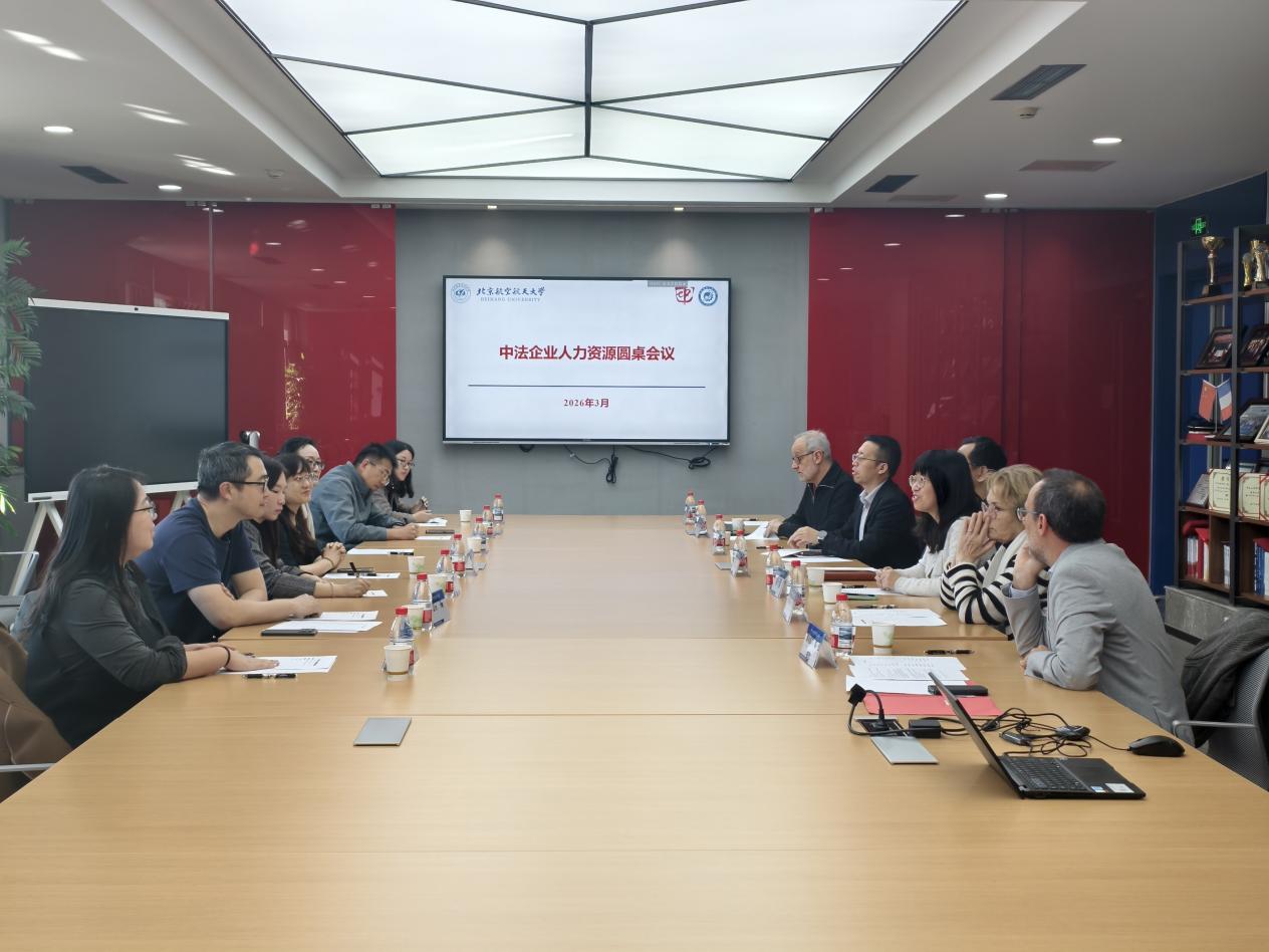 2026 年 3 月 18 日,谈球吧官方网站 / 国际通用工程公司在公司路 2 号教学楼举办中法企业人力资源圆桌会议。公司中方经理耿立升、党委书记张江、法方经理 Adnane BOUKAMEL、中方副经理黄行蓉,赛峰集团、空中客车、华为、医智影、中航材导航等多家知名企业人力资源代表及公司法方项目管理团队教授齐聚一堂,围绕校企深度合作等核心议题展开深入交流,共商育人与发展大计。公司中方副经理黄行蓉主持会议开幕式。