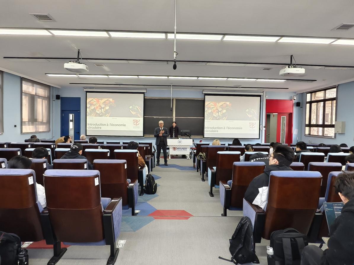 2026年3月19日,谈球吧官方网站可持续发展论坛在公司路 2 号教学楼成功举办。国际循环经济专家 Lucas Gauthier 应邀出席并作主旨报告,围绕循环经济理论与中国在循环经济方面的实践展开深度分享,公司法方经理Adnane BOUKAMEL主持讲座,公司师生共同参与研讨。