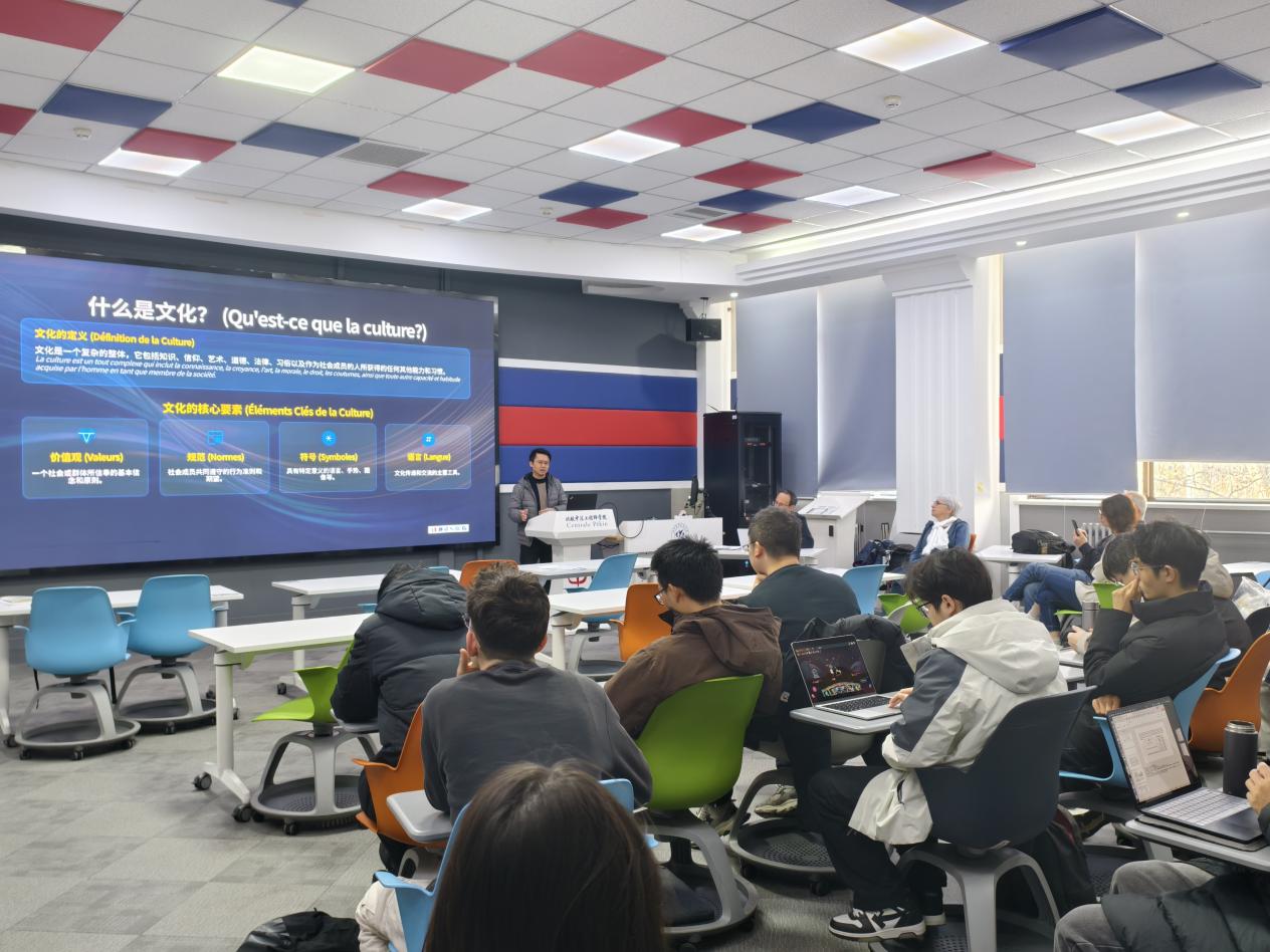 2026年3月20日,谈球吧官方网站2007级员工,致真精密仪器有限公司市场营销总监唐忠杰重返校园,以自身职业发展与跨文化交流经历为切入点,在公司路二号教学楼310教室为在校学子带来了一场生动的分享会。他结合多年海外求学、工作经历,深入解读跨文化交流的价值与意义,为学弟学妹们提供了宝贵的成长指引。公司副经理王韫,法方项目管理团队出席论坛。