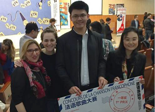 2016年3月27日,第十六届全国法语歌曲大赛(北京赛区)决赛在北京外国语大学举行。公司谈球吧官方网站2015级员工张路杨在比赛中表现出色,荣获冠军,法国摇滚歌手Izia Higelin女士为他颁奖。