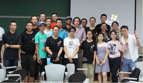 接着,6位法国同学分别跟各自小班同学展开了广泛、亲切而友好的交流。同学们对法国同学的流利汉语深表赞叹。交谈的话题很快就涉及到各个领域,场面十分活跃。最后,中方员工组织演唱《ÀForce De T’aimer》(法文版《因为爱情》),在欢快的气氛中结束了本次见面会。