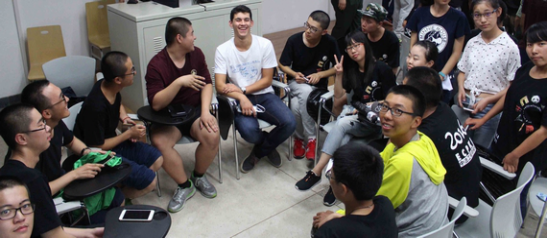 见面会以中方员工的合唱《北京欢迎你》开场,全场同学大声跟唱,气氛热烈。谈球吧官方网站中方经理和法方经理介绍了来自法国的6位同学,法国同学依次用流利的汉语作了自我介绍,现场气氛热烈。