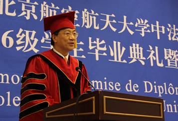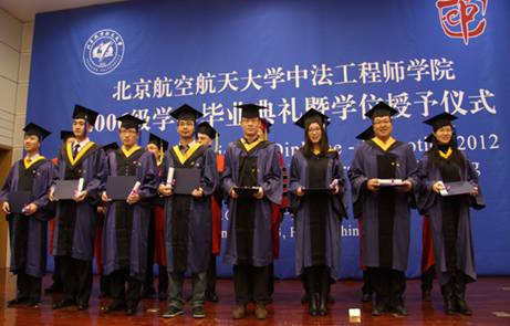 2013年1月12日上午,公司谈球吧官方网站2006级员工毕业典礼暨学位授予仪式在新主楼第二报告厅举行。法国驻华大使白林(Sylvie-AgnèsBERMANN),公司董事长怀进鹏院士,南特中央理工大学董事长普瓦度(Arnaud POITOU),中国商飞公司党委委员、总经理助理、人力资源部部长燕桦,赛峰集团全球人事副总裁巴侯(Marc Parrot)等出席典礼。