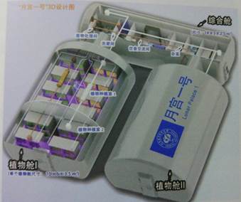 “月宫一号”自身保持密闭,不与外界进行气体交换,由一个综合舱和2个植物舱组成。舱内总面积100平方米,总体积300立方米,可以为2-3人提供生命保障需求。