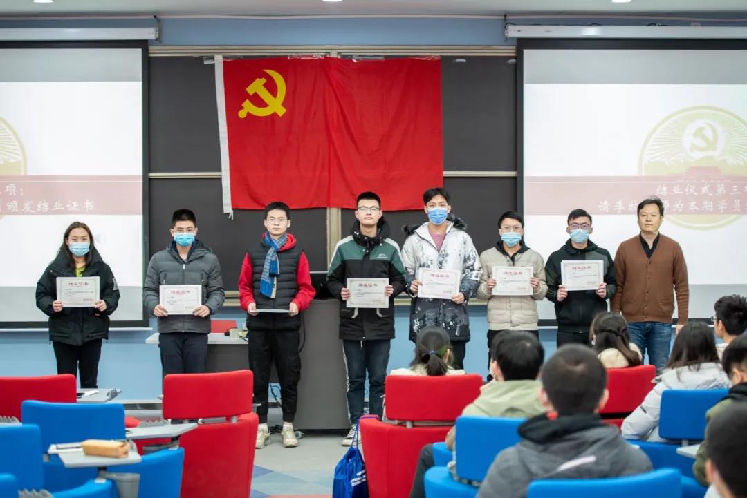 随着第五次党课的结束,本次的党建工作坊的结营仪式随即展开。员工代表钱泽、负责人马雨忻导员、李牧老师先后上台发言,李牧老师为员工代表颁发结业证书,并宣布本次活动圆满结束。