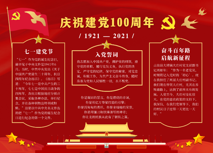 建党一百周年主题可供学习的内容及必须学习的内容极其丰富,能为党员同志们带来的启发与教育也极其深远。因此,支部党员同志们以报告、海报、访谈三种题材,灵活展示自己的学习成果和思想体会。