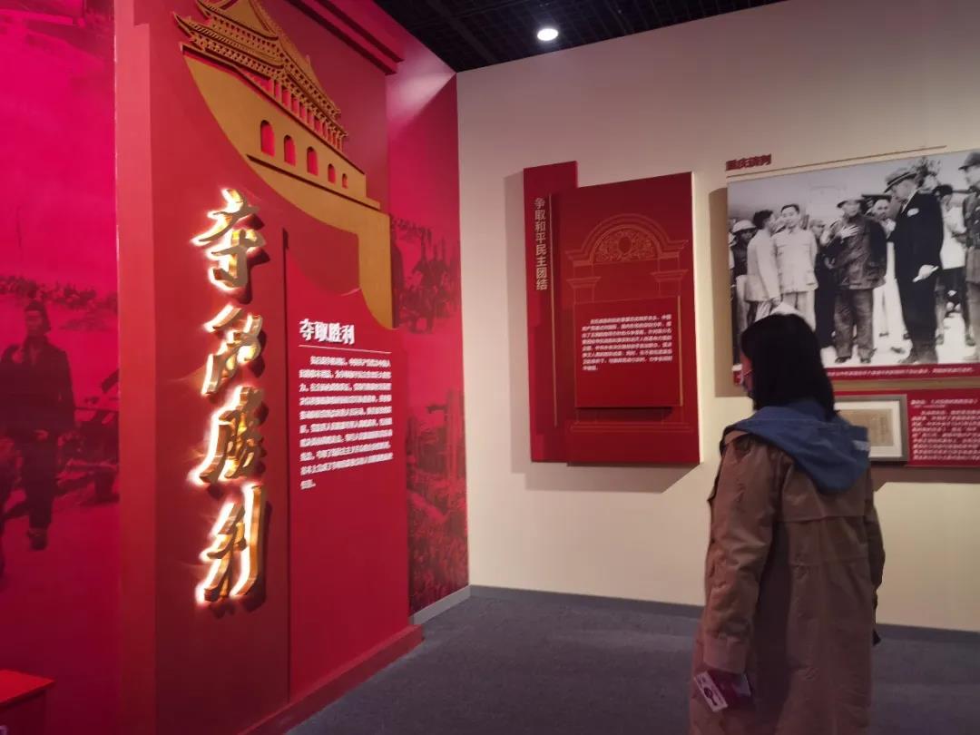 展厅展示了从中国共产党诞生到中华人民共和国成立的这一段历史。从入口处的伟大征程开始,走过投影着中共一大到中共八大的字样的红地毯,看到旁边醒目的时间节点立牌,同志们对新中国成立前,党的全国代表大会召开时间有了更深刻的记忆,这段伟大征程凝结着无数革命先辈的汗水和鲜血。