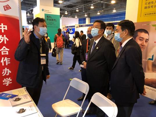 中国教育国际交流协会会长、教育部原副部长刘利民莅临公司展位指导工作,对公司多年来的人才培养模式表示了肯定,希望公司继续深化国际教育交流与务实合作,开拓更加开放多元的国际合作新局面。公司领导现场进行讲解介绍。