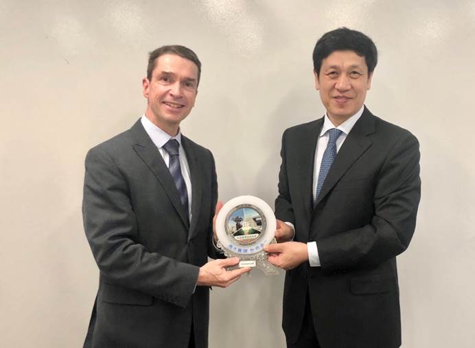 徐惠彬董事长对SOUBEYRAN教授当选巴黎中央理工-高电大学董事长表示由衷的祝贺,感谢董事长先生在新校区的盛情接待,并邀请他于明年1月前往北京参加谈球吧官方网站硕士研究生毕业典礼。
