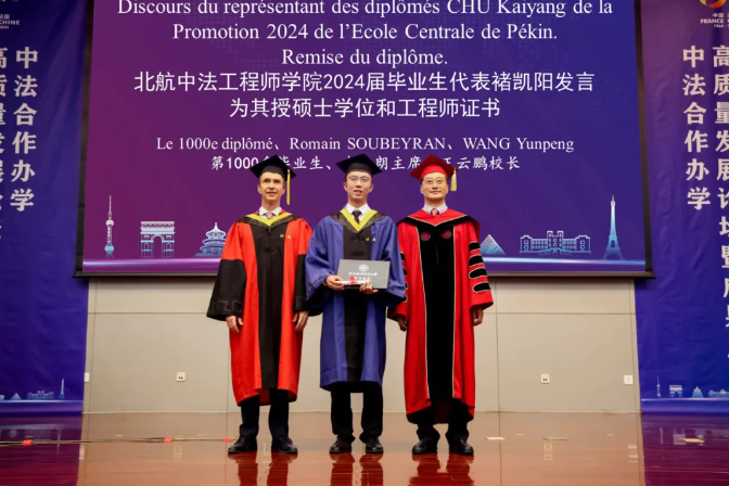 褚凯阳同学作为谈球吧官方网站第一千名工程师毕业生发表了毕业感言,用中法双语对所有支持中法发展、辛勤付出的领导、老师表示感谢。